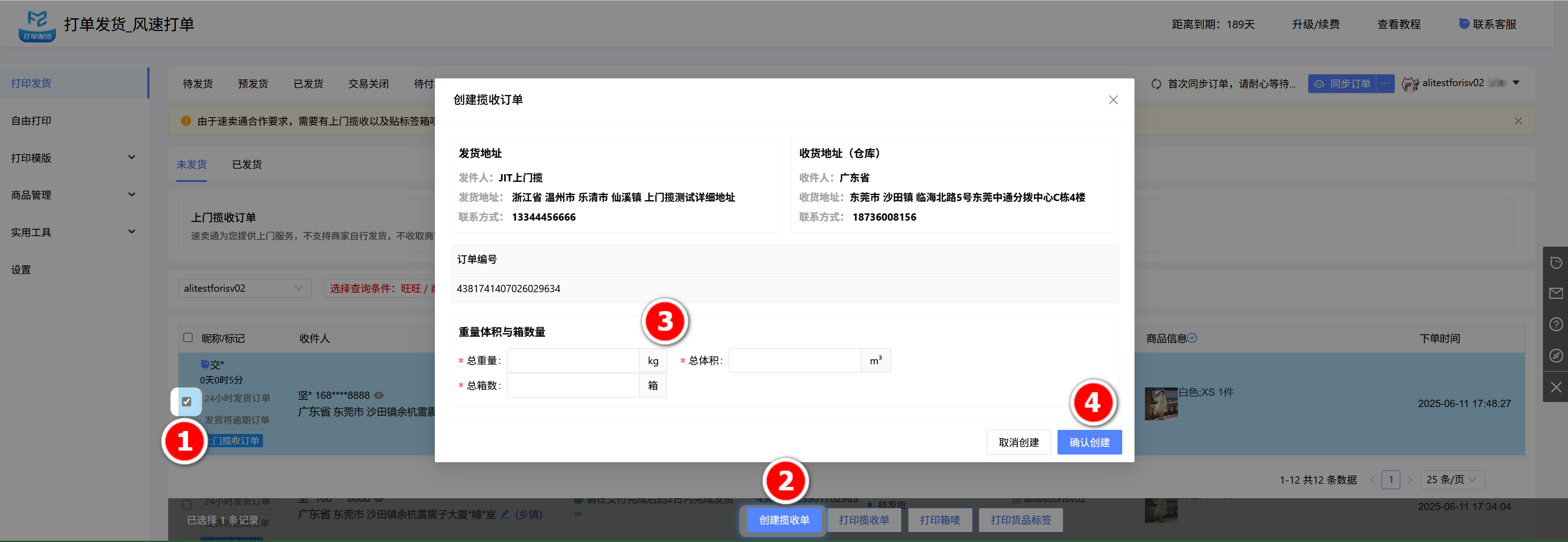 打印并张贴箱唛和货品标签后,对于上门揽收订单就可以创建揽收单,等待司机取货就可以了