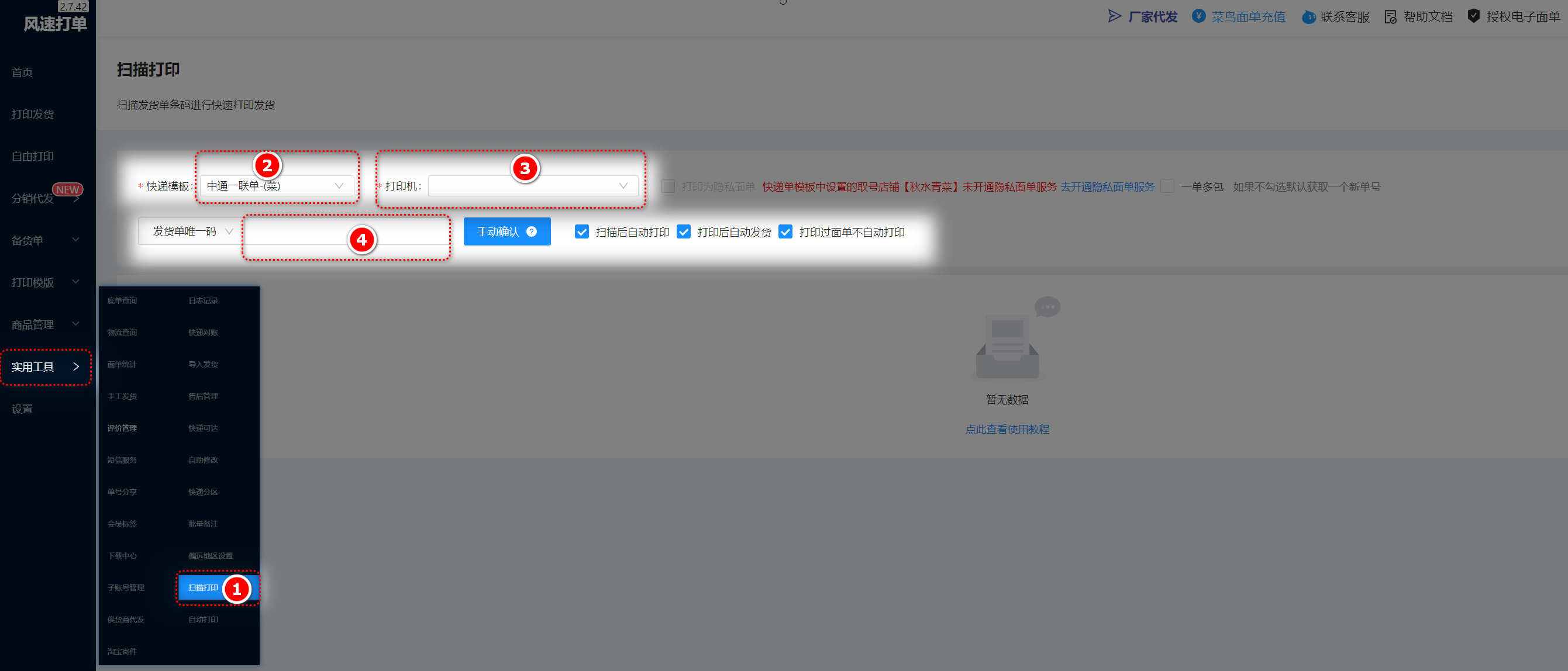 风速打单的全新功能——扫描发货单自动打单发货